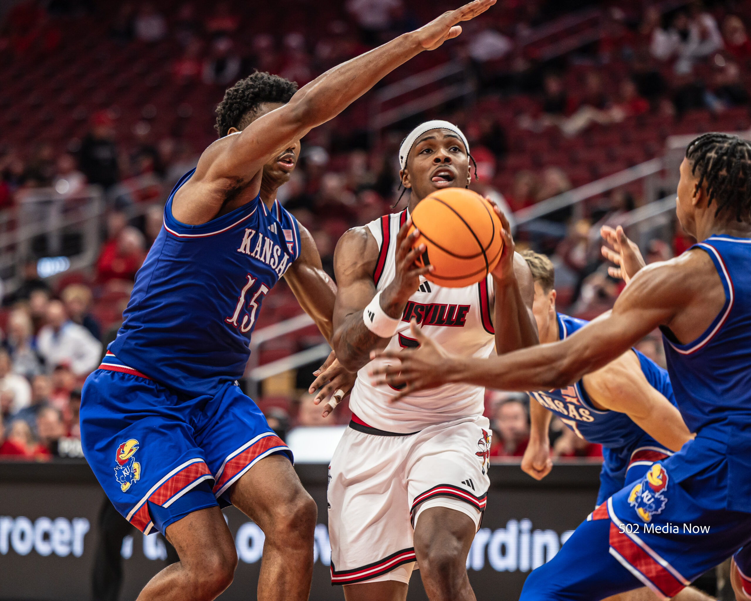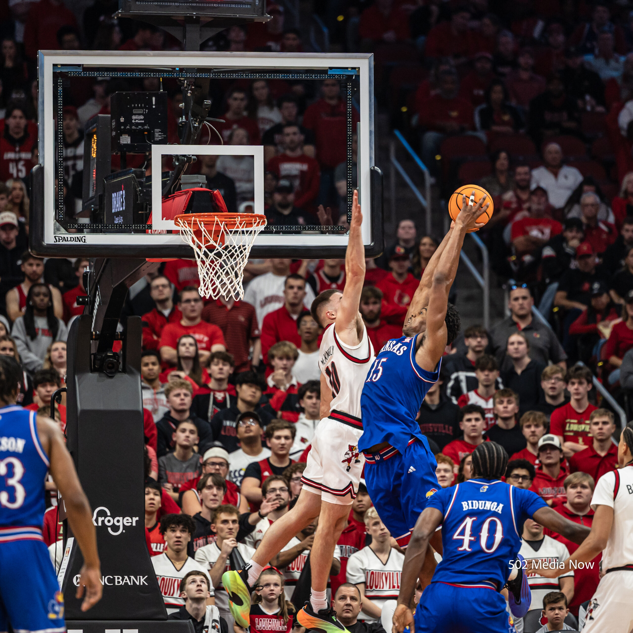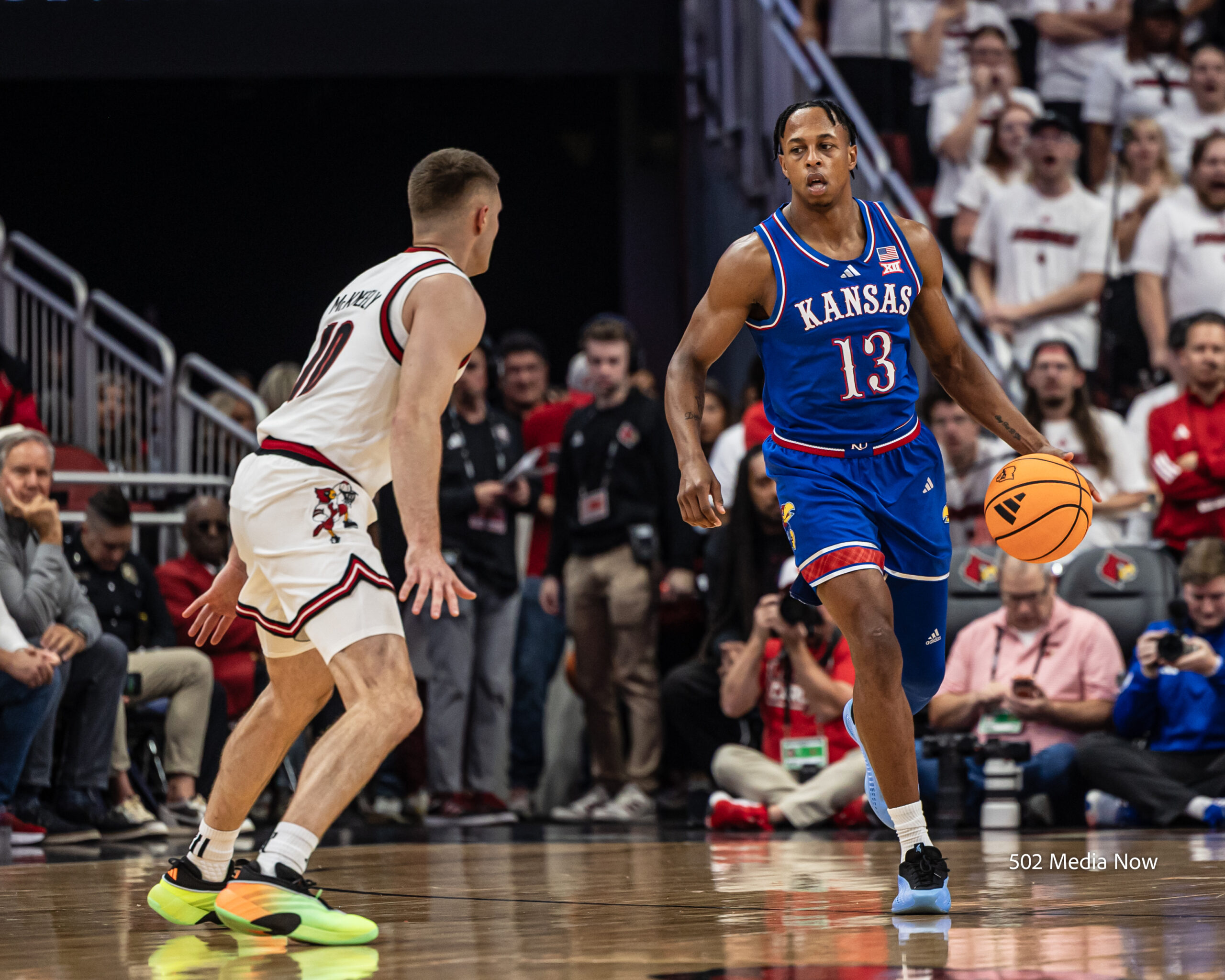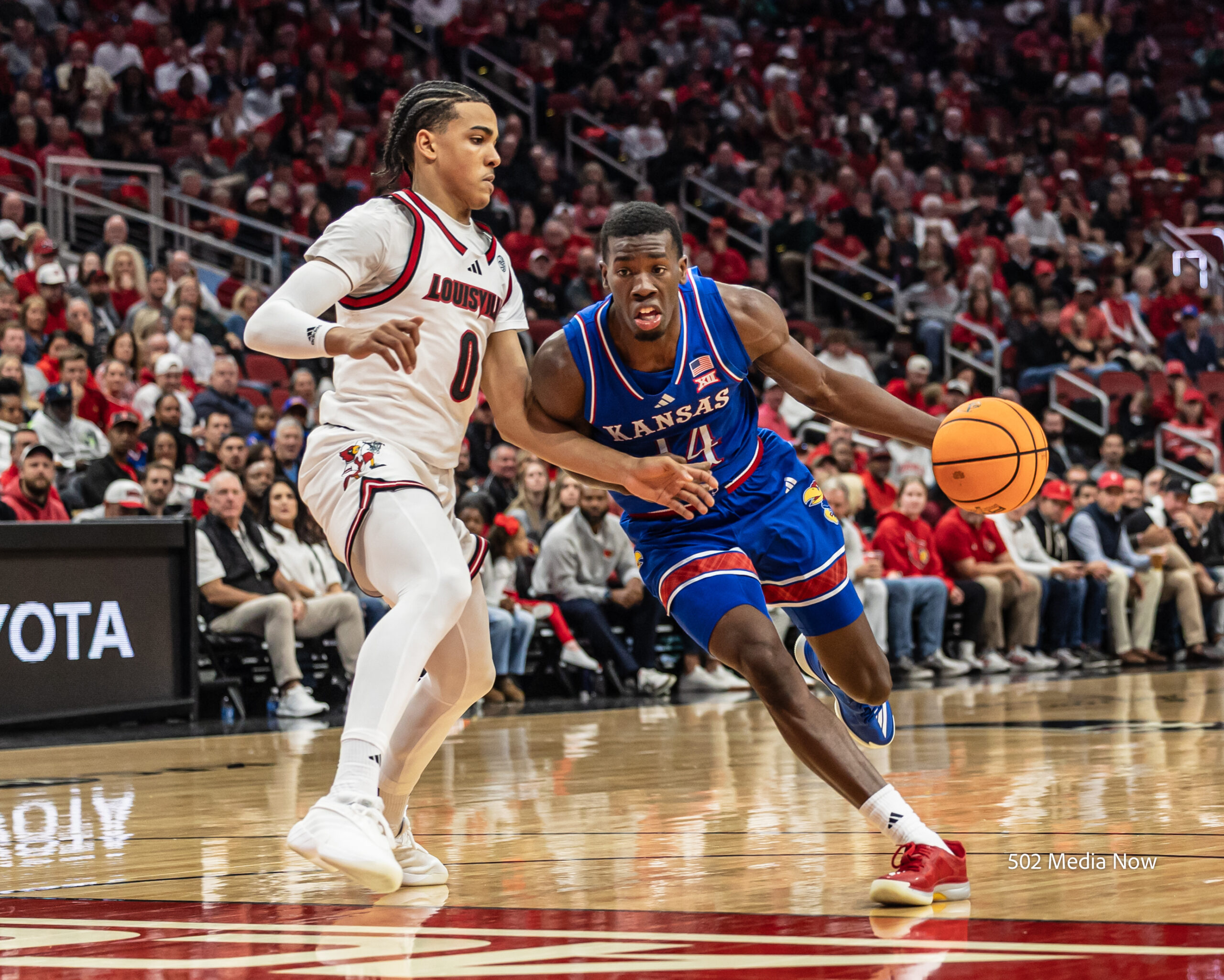 Kansas Outlasts Louisville 90–82 in High-Energy Exhibition at KFC Yum! Center