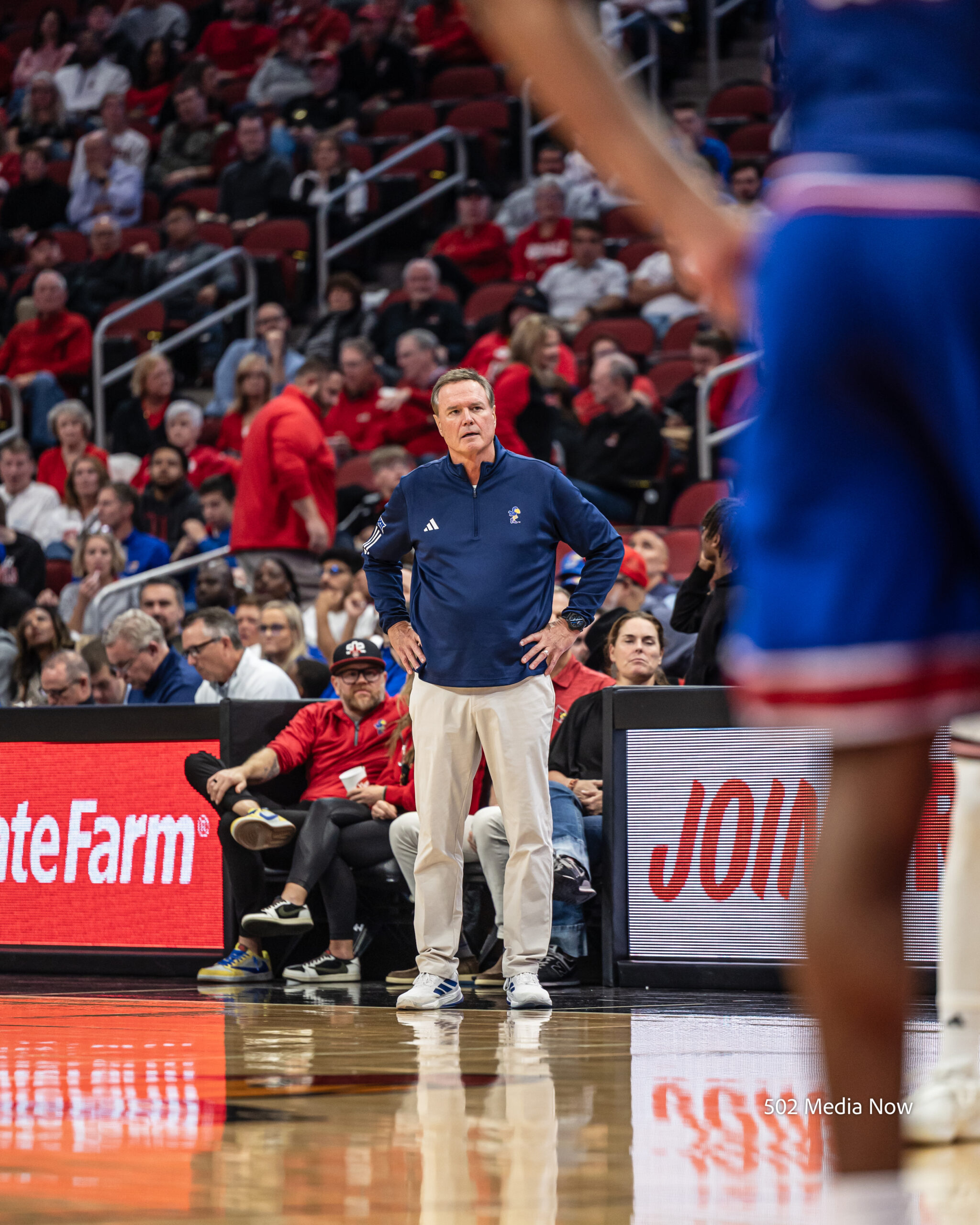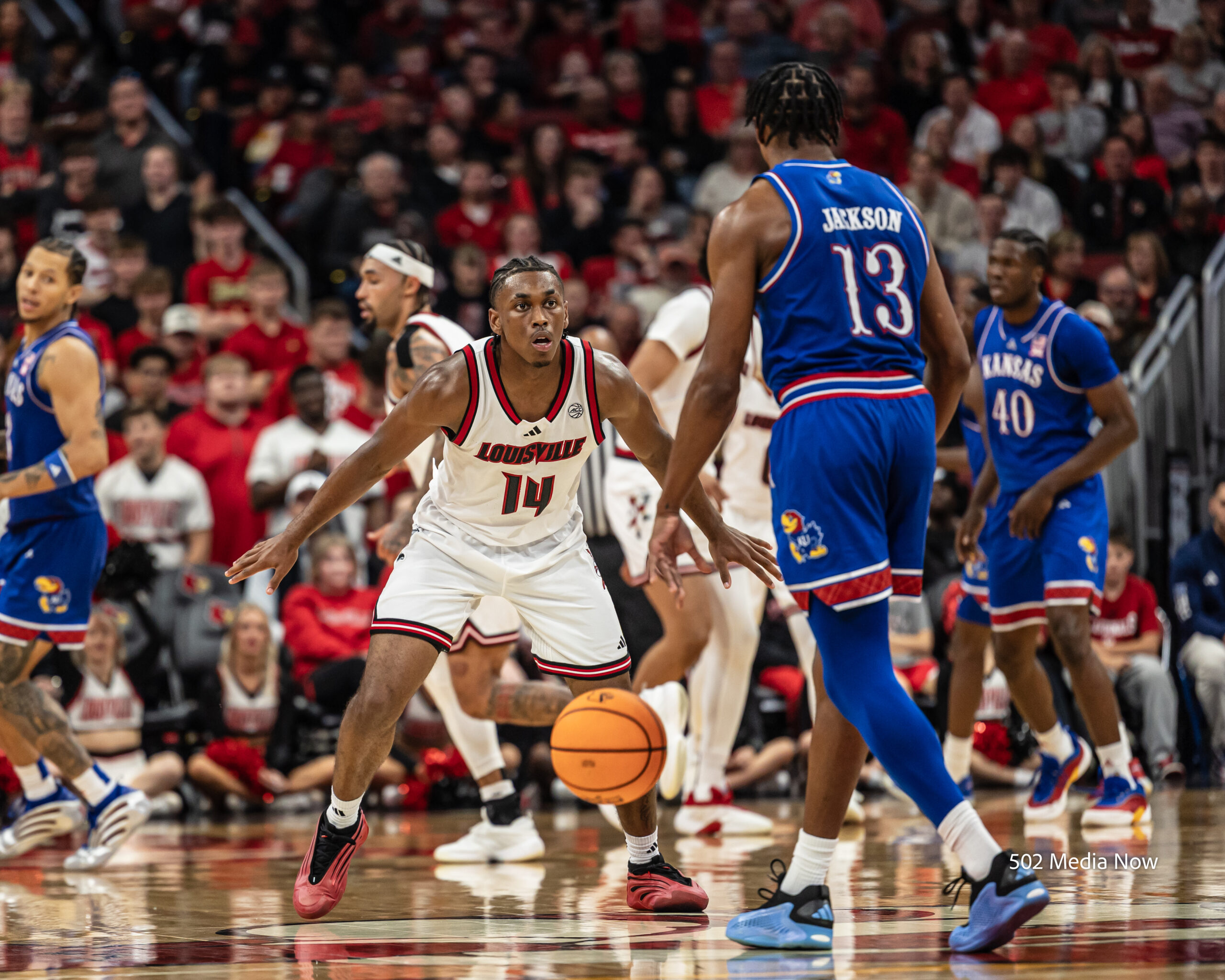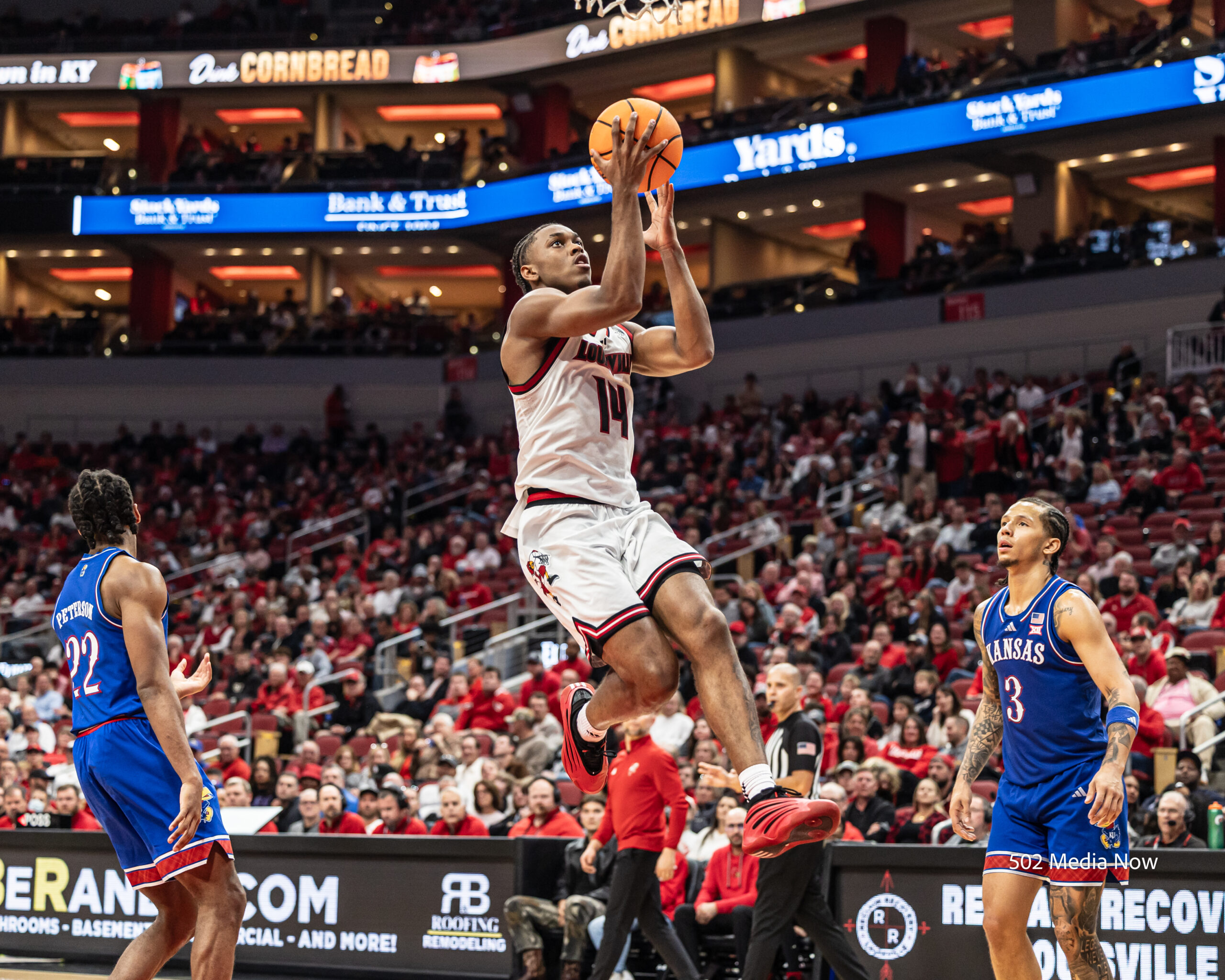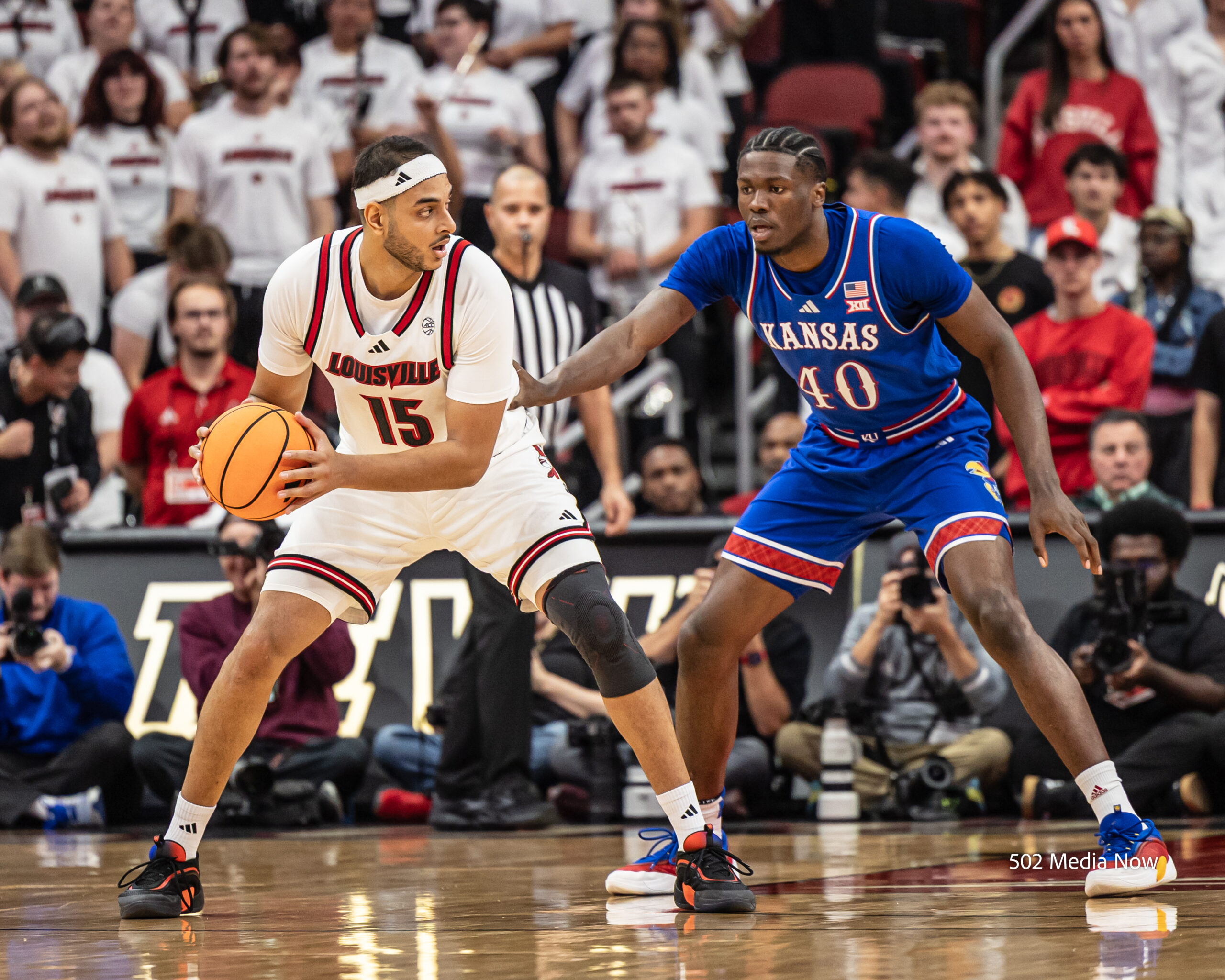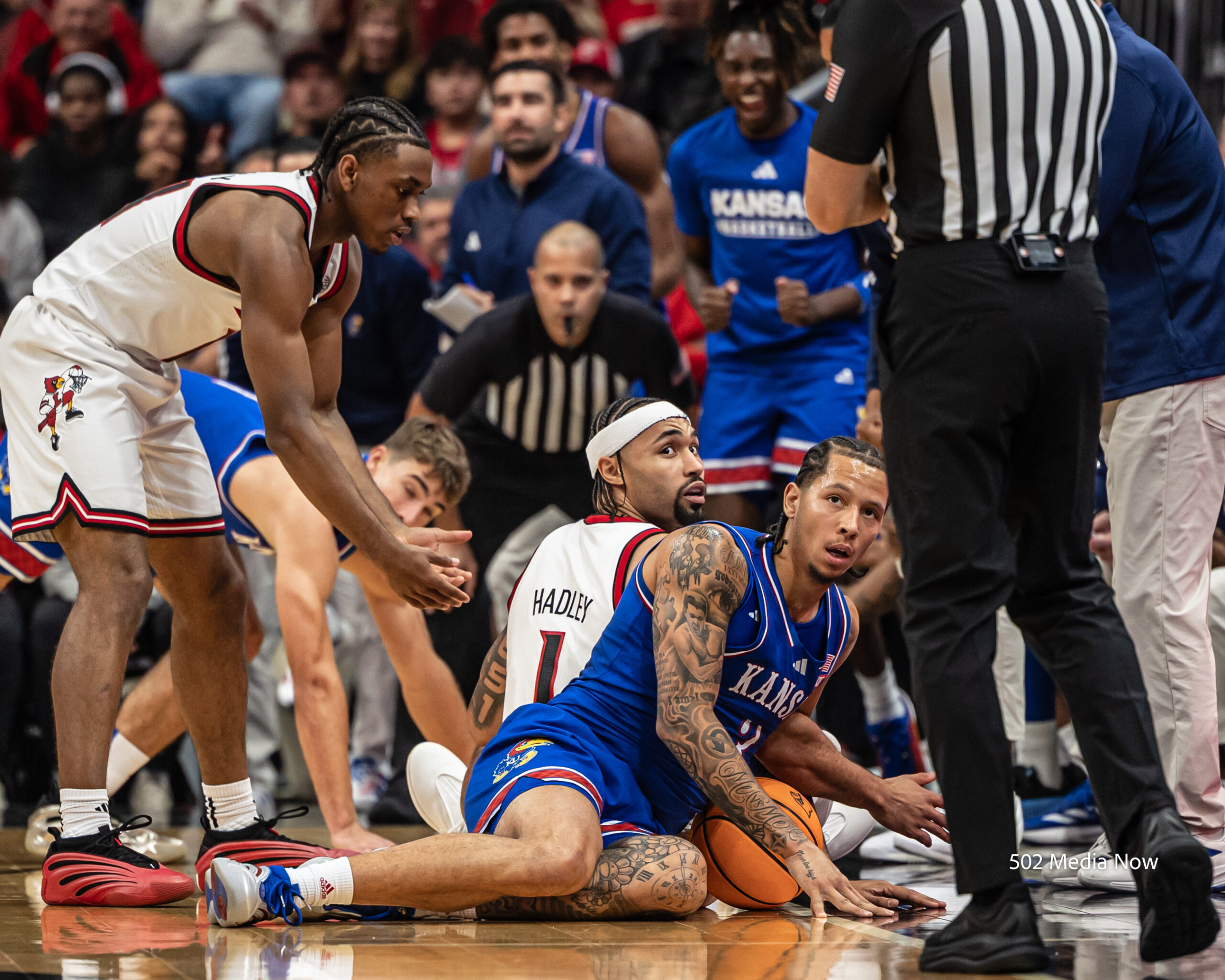 Kansas Outlasts Louisville 90–82 in High-Energy Exhibition at KFC Yum! Center