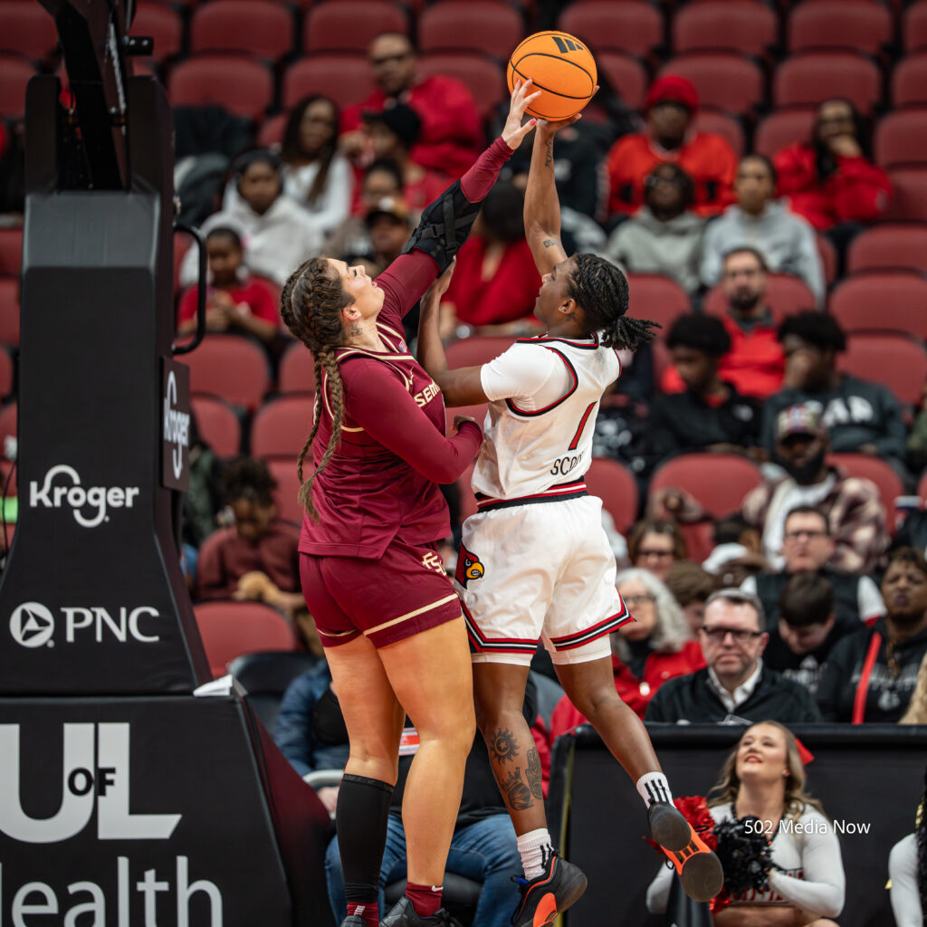The No. 9 Louisville Cardinals women’s basketball team put on a show at the KFC Yum! Center, defeating the Florida State Seminoles 88-65. The Cardinals’ balanced scoring attack was led by Laura Ziegler, who contributed 14 points and 8 rebounds, while Skylar Jones, Imani Berry, and Reyna Scott each scored 11 points.